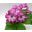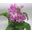 Сиренево-розовые цветы с белым горлом и тёмными лучиками из горла, волнистые края лепестков. Обильное и раннее цветение.