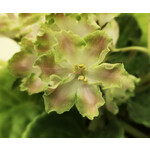 Новинка 2025г. Крупные (до 6см) махровые белые цветы с лимонно-жёлтым центром и салатным рюшем. Края лепестков на некоторых цветах с голубоватыми тенями. Цветоносы короткие, стоячие, на каждом от 2 до 4 цветков. Цветы очень долго остаются свежими. Пестрол